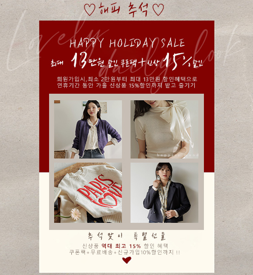 할인 득템의 기회♥ 사랑스럽고 편안한 아이템들을 특가로 만나보세요!