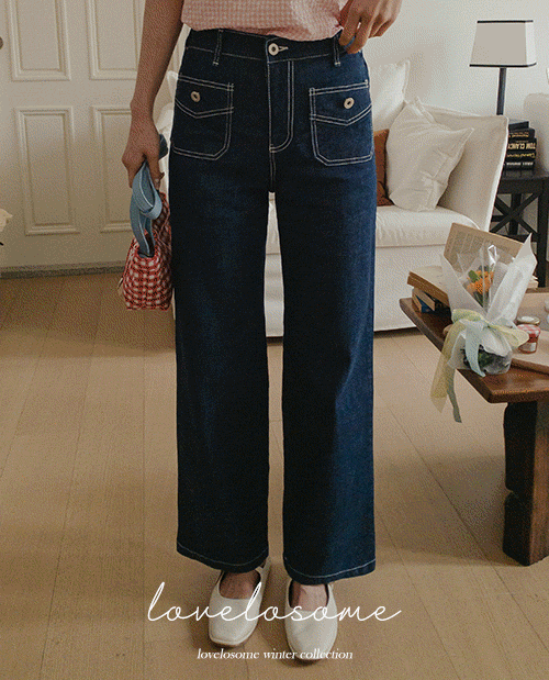 아웃포켓 와이드 일자 콜런 데님 팬츠 [S(55),M(66),L(77),XL(88)]