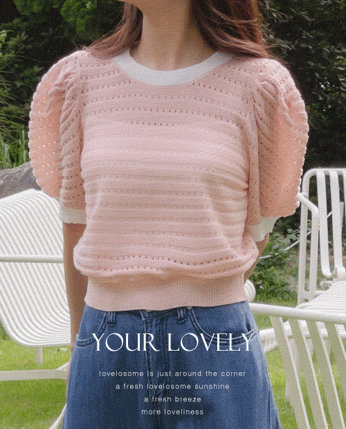 이안 배색 퍼프소매 펀칭 반팔니트 [Free(55~66)]