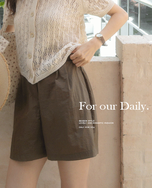 미드나잇 포켓 뒷밴딩 투핀턱 4부바지 [Free(55~66)]