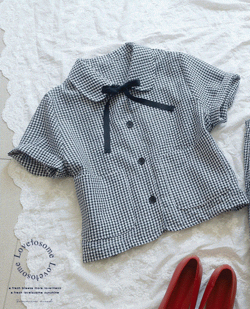 [셋업가능]빌리 둥근카라 리본끈 체크 시어서커 반팔자켓 [Free(55~66)]