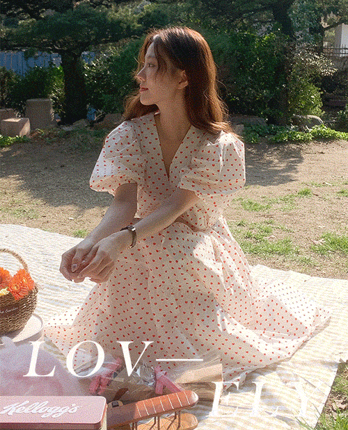[리본끈SET]]아이싯떼루 하트 만땅 V넥 원피스 [Free(55~77)]
