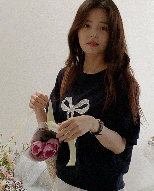 러빗 레이스 리본 나그랑 반팔 맨투맨 [Free(55~77)]