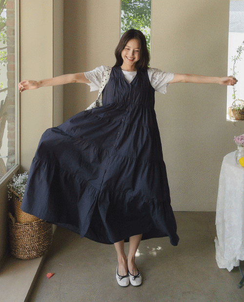 [바스락 소재] 윈즐리 캉캉 나시 롱원피스 [Free(55~66)]