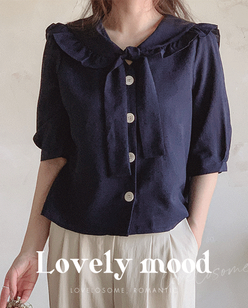 러플리 5부 프릴 빅카라 타이 블라우스 [Free(55~66)]