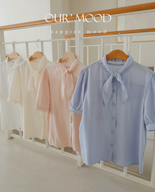 유얼 리본스카프 반팔 블라우스 [Free(55~66)]