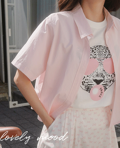 파스텔 핑크라 색상이뻐요~ 크롭기장이라 좀 짧아요