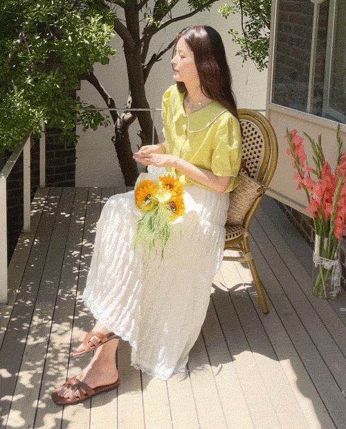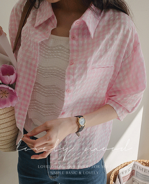 슈가 배색레이스 시어서커 블라우스 [Free(55~66)]