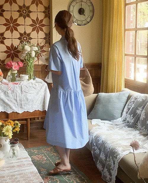 프레드 버튼 카라 반팔 셔츠 원피스 [Free(55~77)]