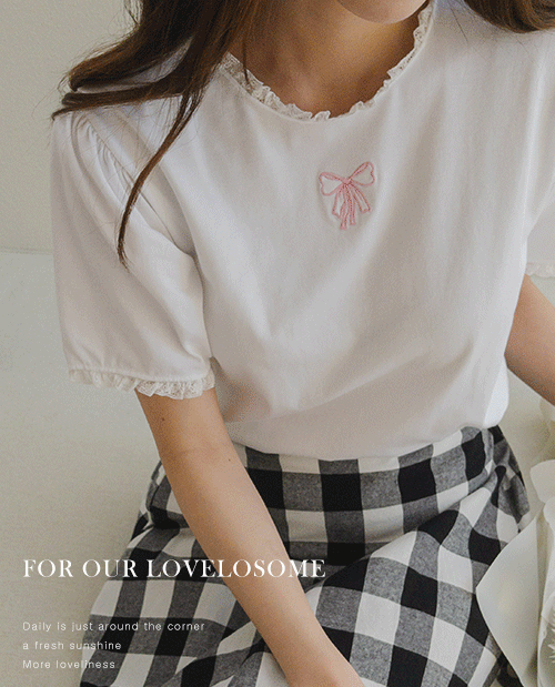 미스티 레이스넥 리본자수 티 [Free(55~66)]