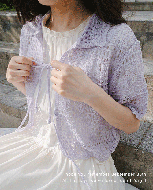 모즈 펀칭 카라 리본 니트 가디건 [Free(55~66)]