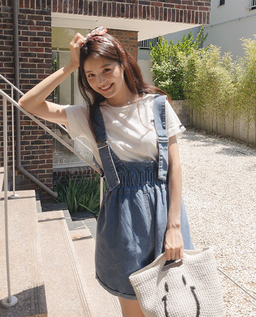 [2WAY] 인디 허리밴딩 리본끈 멜빵 롤업 점프수트 [Free(55~66)]