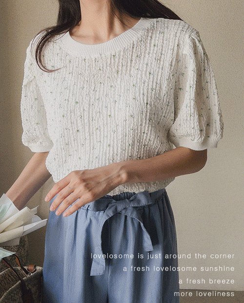 [엠보자가드 원단]데이원 플라워 소매밴딩 반팔티 [Free(55~66)]