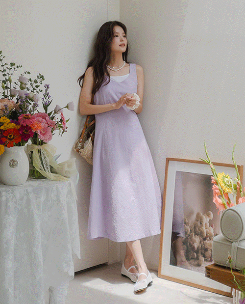 [A라인]블랙베리 시어서커 나시 롱원피스 [Free(55~66)]