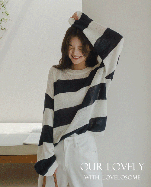 그웬 스트라이프 단가라 루즈핏 니트 [Free(55~77)]