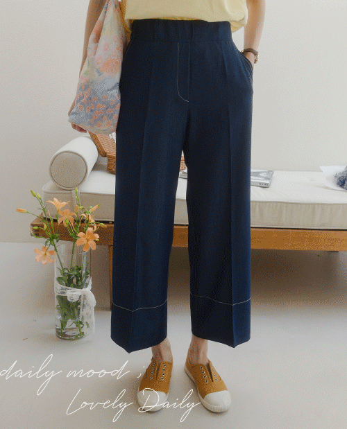 [찰랑찰랑]리프 통와이드 스티치 데님 팬츠 [S(55),M(66),L(77),XL(88)]