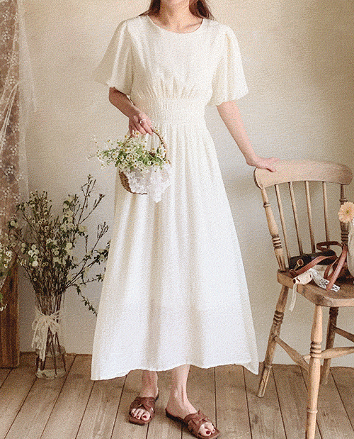 아테네 퍼프 밴딩 후레아 롱원피스 [Free(55~66)]