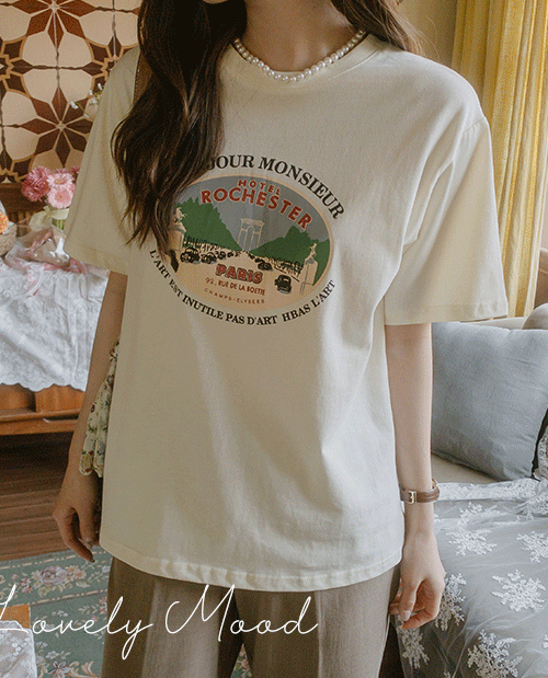 봉쥬르 프린팅 반팔 티셔츠 [Free(55~66)]
