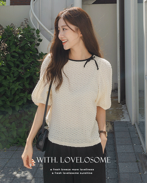 모디 엠보 리본넥 블라우스 [Free(55~66)]