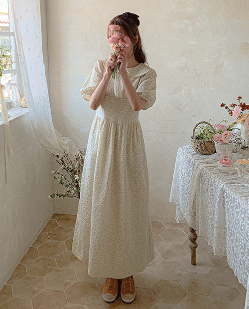 이자벨 둥근카라 허리끈 플라워 원피스 [Free(55~77)]