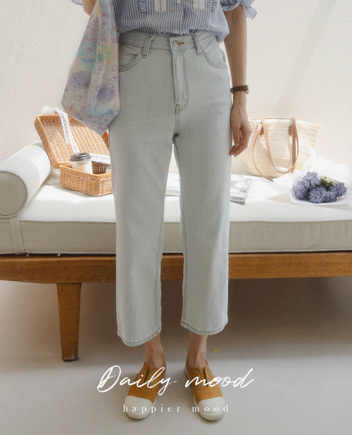 샤벳 뒷밴딩 와이드 스티치 데님팬츠 [S(55),M(66),L(77)]