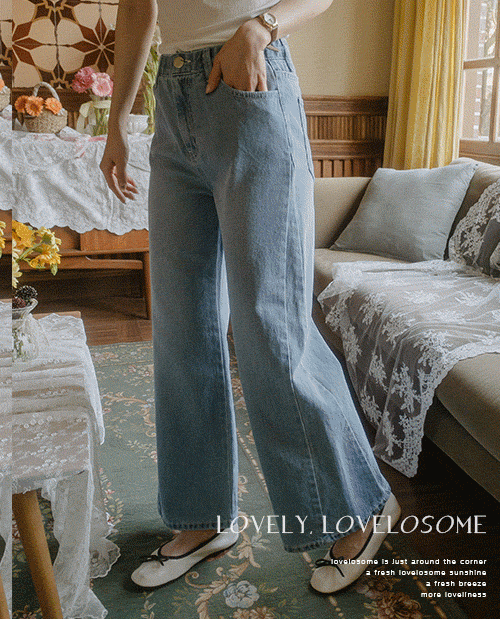 밀렌 플레어 와이드 히든밴딩 데님팬츠 [S(55),M(66),L(77)]