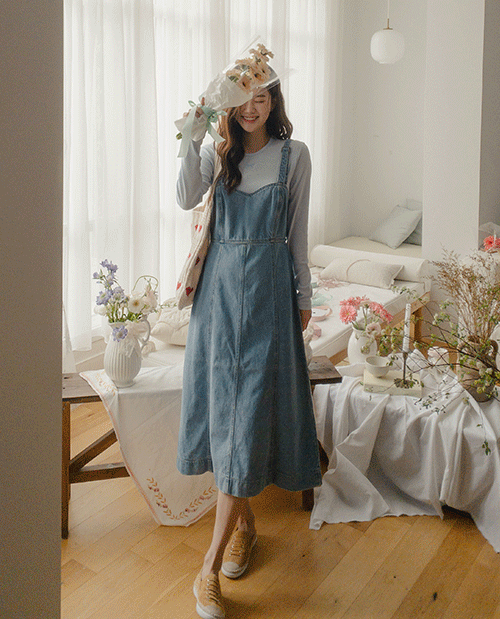 멜로이 인어 멜빵 데님 롱원피스 [Free(55~66)]