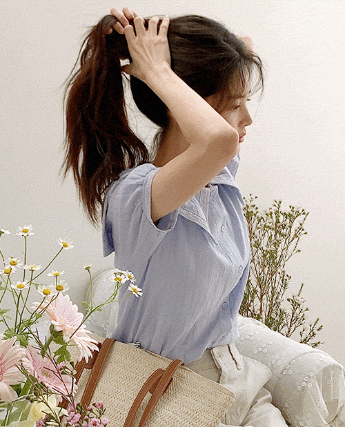 로미 세일러카라 반팔 블라우스 [Free(55~66)]