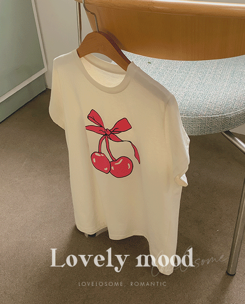 상큼 리본 체리 라운드 반팔티 [Free(55~66)]