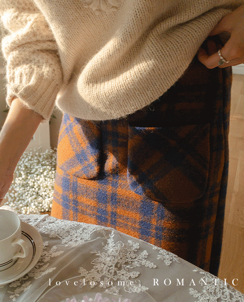 캘리 도통 캐시미어 체크 스커트[Free(55~66)]