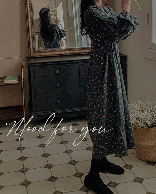 윈더카라 빈티지 플라워 셔링 기모 원피스[Free(55~66)]