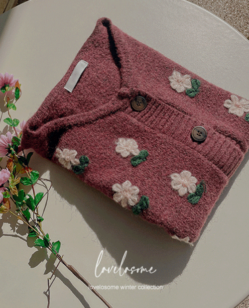 메리핀 모란꽃 자수 니트 베스트[Free(55~66)]