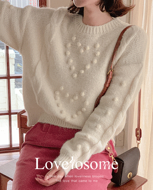 퐁퐁 하트 라운드 크롭 니트 [Free(55~77)]