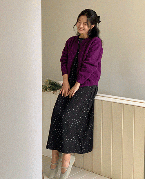 벨라 살랑살랑 플레어 도트 롱원피스 [Free(55~66)]