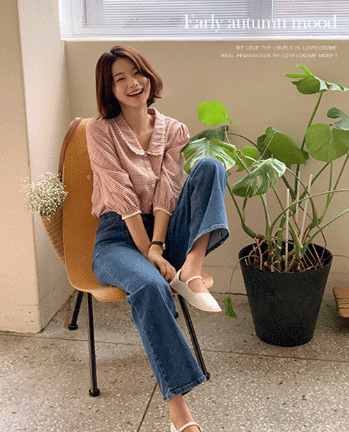 체리 체크 카라 셔링 블라우스 [Free(55~66)]