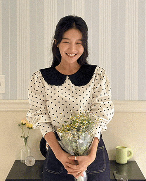 올린 땡땡이 퍼프 블라우스 [Free(55~66)]