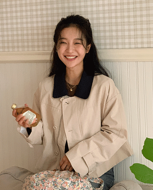 폴린 카라 배색 면 자켓 [Free(55~77)]
