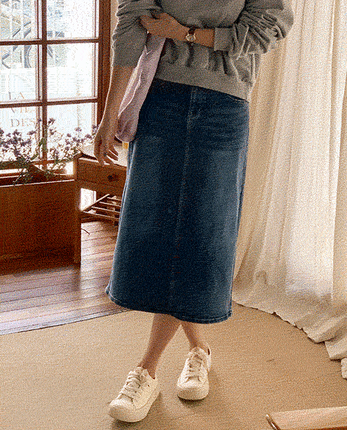 벨리나 H라인 미디 데님 스커트 [S(55),M(66),L(77)]