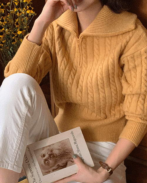 마들렌 꽈배기 카라 집업 니트 [Free(55~66)]
