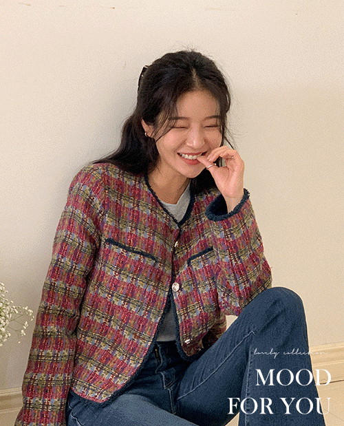 맥그리니 은장 체크 트위드 자켓 [Free(55~66)]