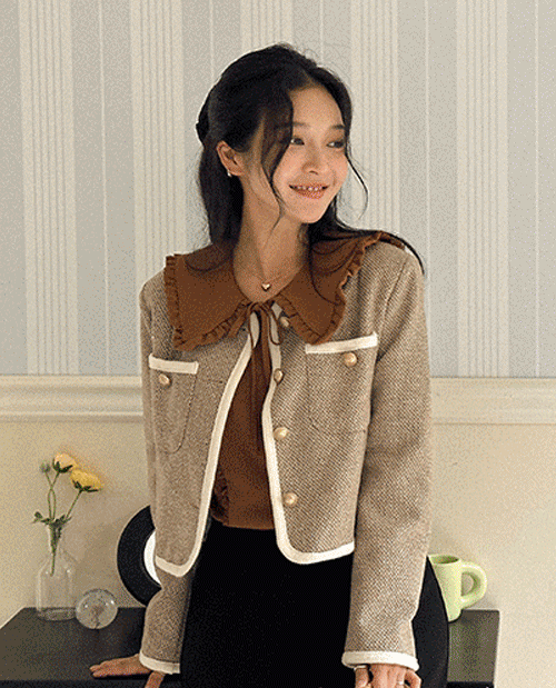 마틸 골드 버튼 배색 트위드 자켓 [Free(55~66)]