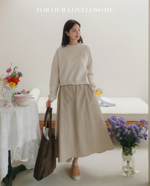 [허리스트링] 데이슈 자수 맨투맨 롱원피스 [Free(55~77)]