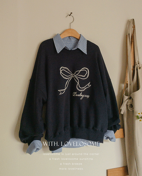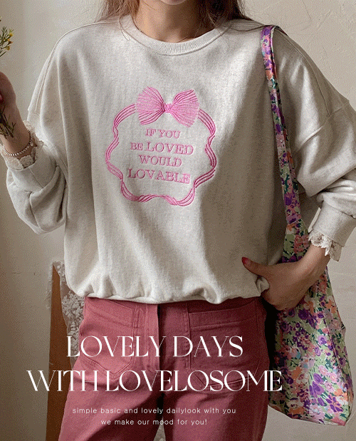 럽미 리본 프린팅 루즈핏 라운드 맨투맨 [Free(55~77)]