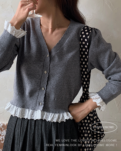 마리나 펀칭 레이스 브이넥 울 가디건 [Free(55~66)]