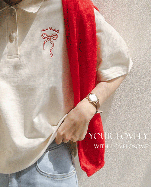 러비엔 하트버튼 카라넥 티셔츠 [Free(55~66)]