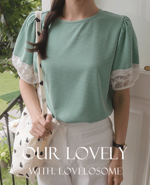 [스판짱짱]올더스 유넥 잔체크 레이스 소매 반팔티 [Free(55~66)]