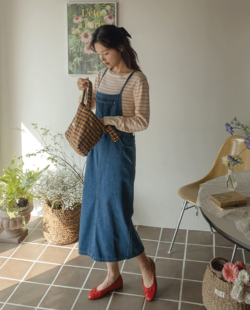 셀로아 뷔스티에 허리끈 데님 원피스 [Free(55~66)]