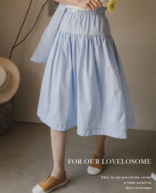 허밍 프런트 패치 프릴 올밴딩 미디 스커트 [Free(55~77)]