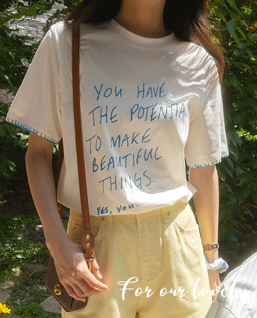 아멜 소매자수 프론트 레터링 반팔 티셔츠 [Free(55~66)]