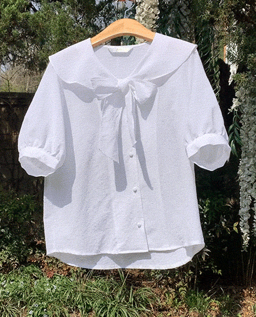 클로디 리본타이 반팔 블라우스 [Free(55~66)]
